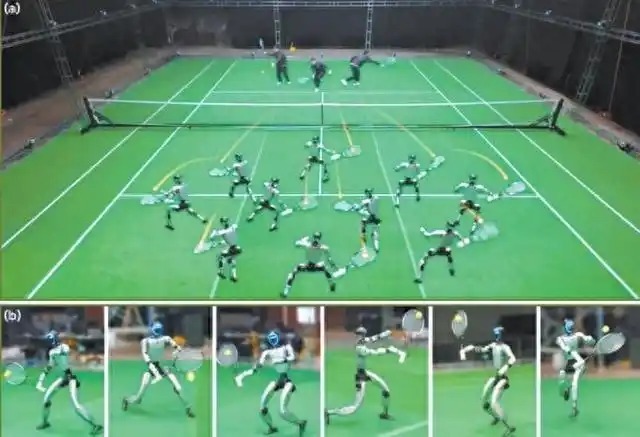 网球运动堪称人形机器人的“终极考场”——需要以每秒数米的速度在球场上来回奔跑,对时速几十公里的来球做出反应,并在几毫秒的球拍接触时间内完成击球。传统人形机器人受限于预编程模式和对高质量动作捕捉数据的依赖,难以应对如此随机、多变的对抗环境。